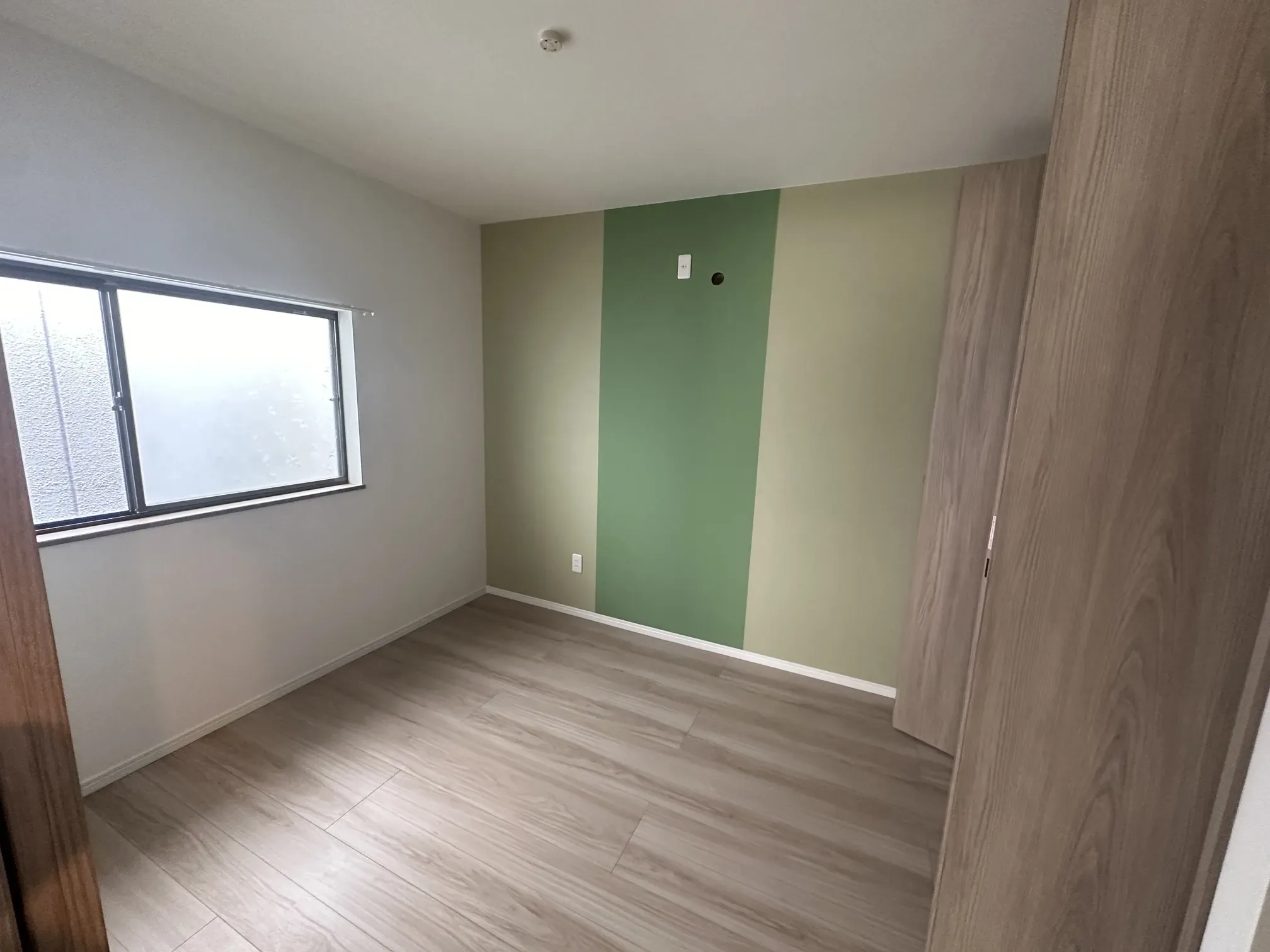 アクセントとなる1面に個性的なカラーを取り入れることで、シンプルながらもおしゃれで心地よい洋室空間へと仕上がりました。