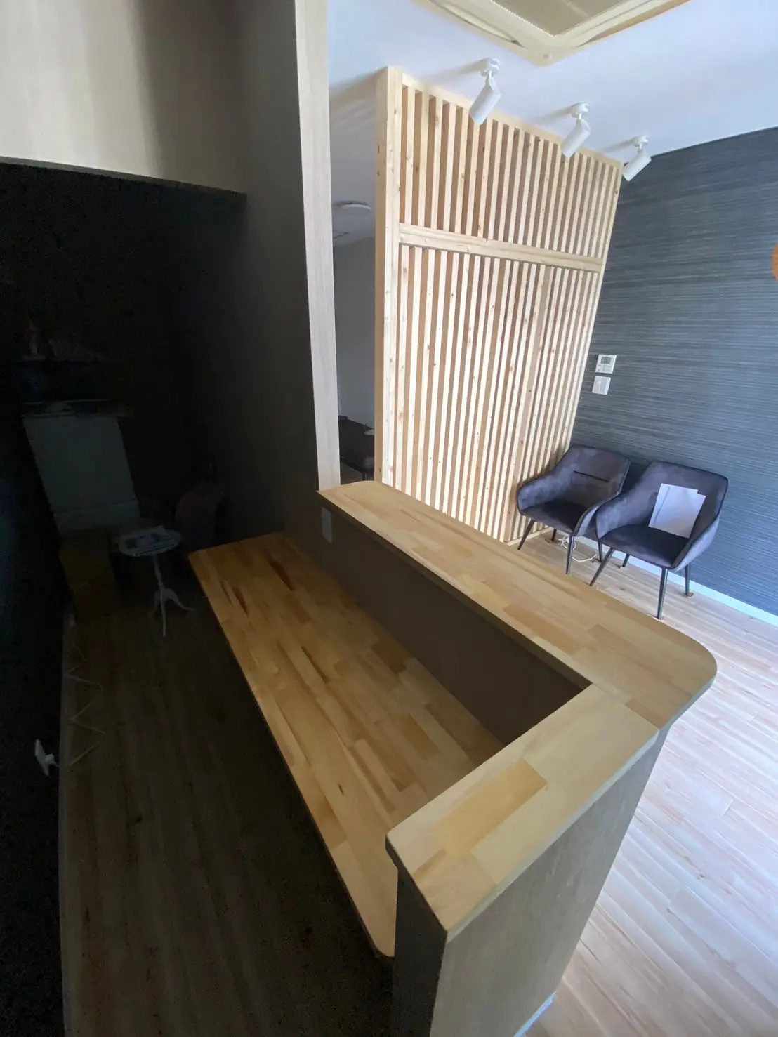 全体の色合いに合わせ淡い色の木を使用し、内装を変更しました。