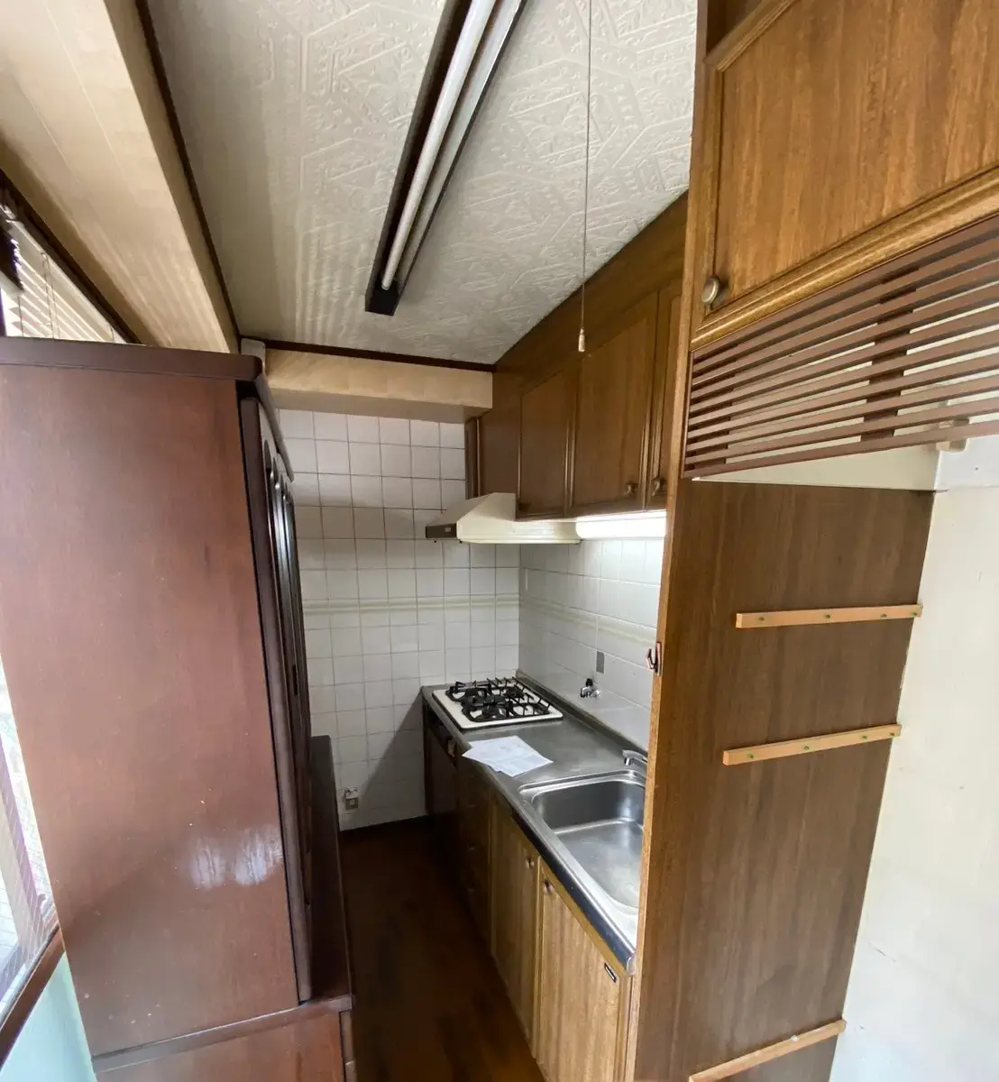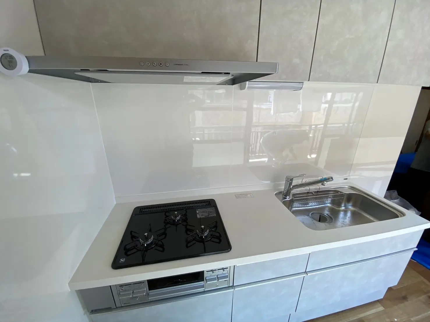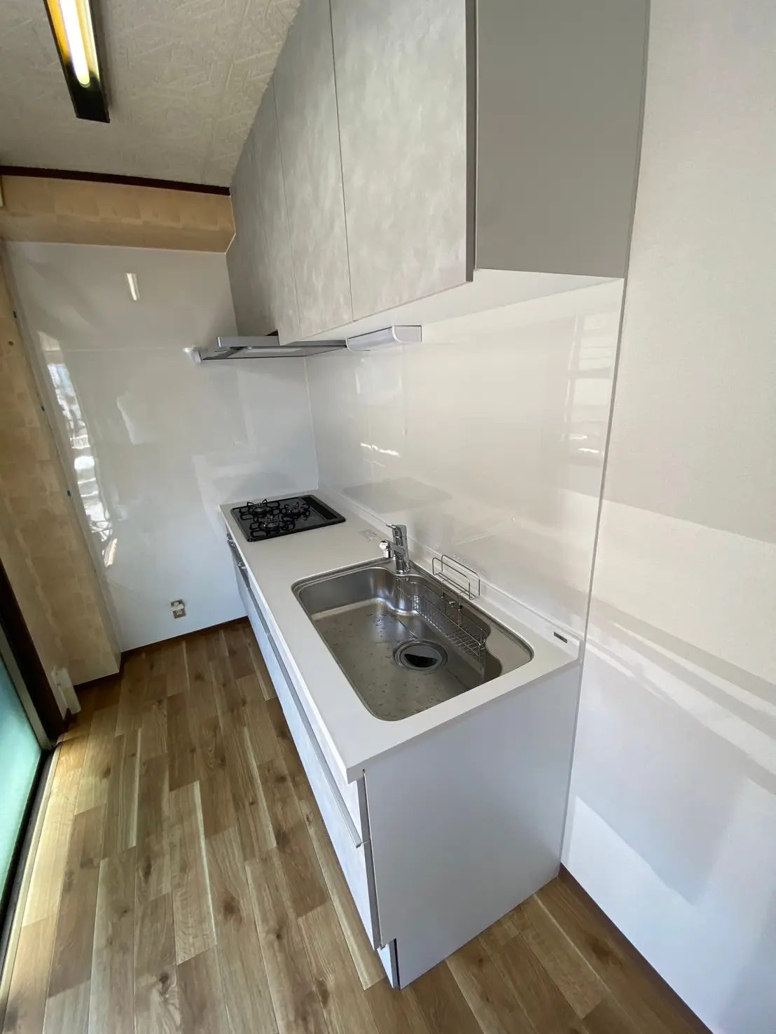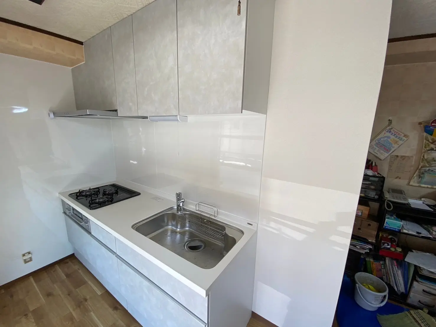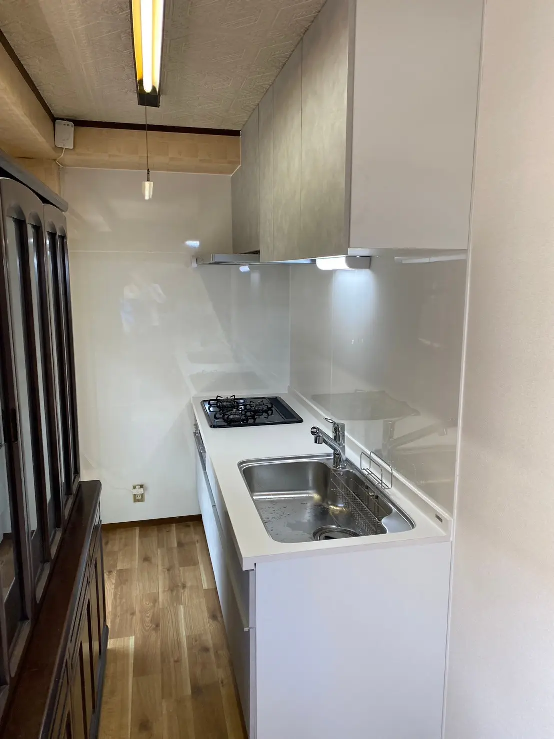 まず、キッチンの幅を広くするために元々備え付けられていた吊戸棚を撤去しキッチンスペースを最大限広くしました。