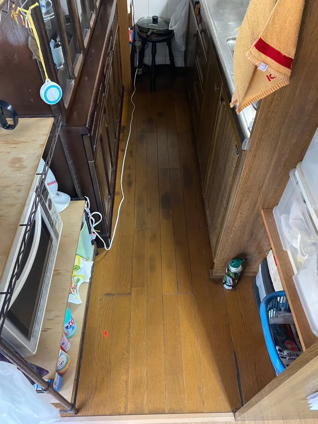 お住まい当時から備え付けられていたキッチンと棚は長年使用していたことで汚れが目立っていました。